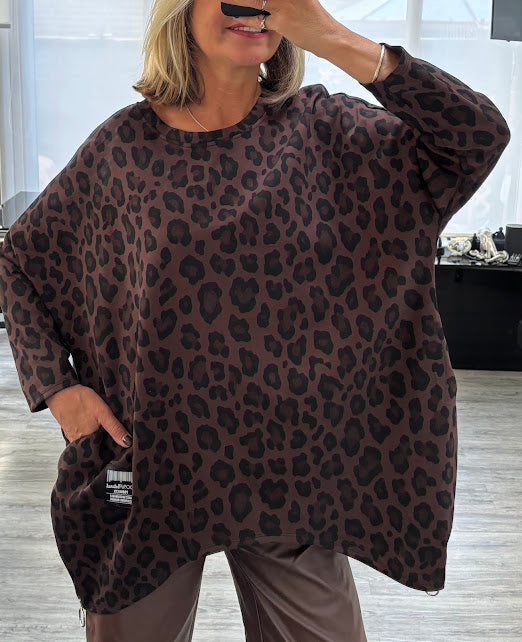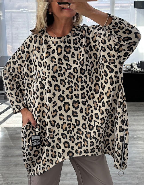 Round neck oversized leopard print top